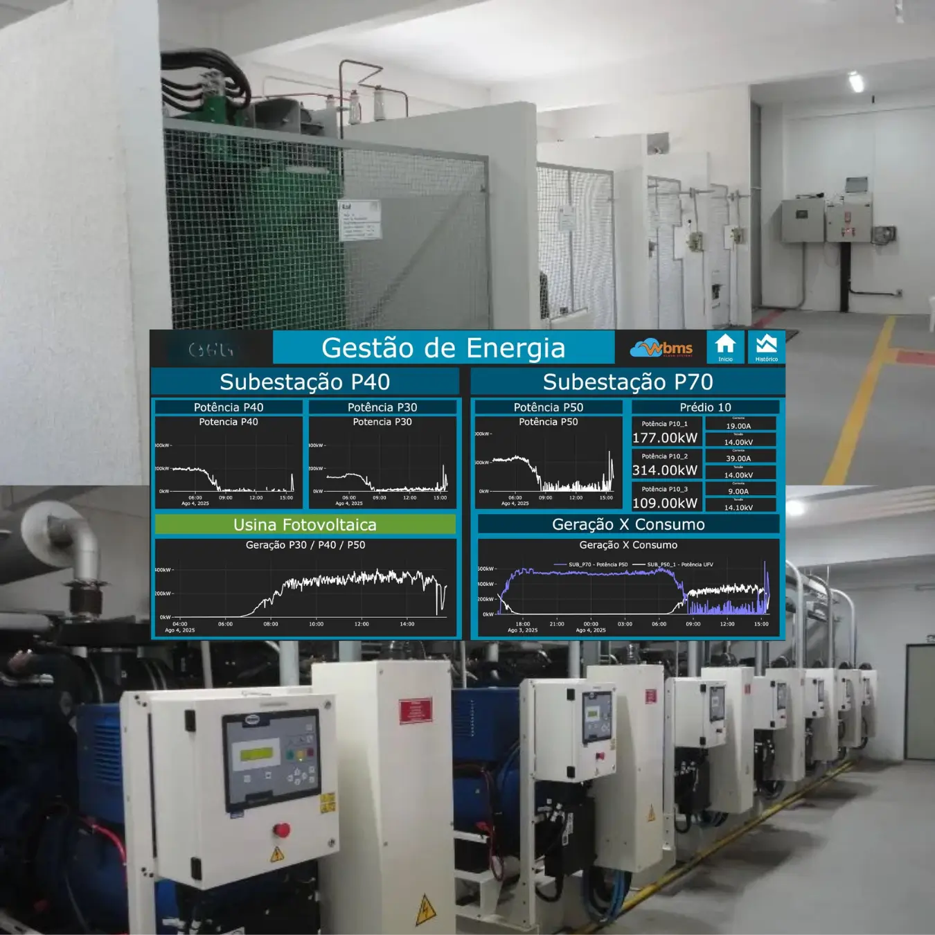 Gerencie iluminação, climatização, motores e energia de forma centralizada, promovendo eficiência e redução de custos operacionais.